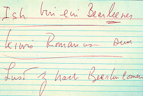 Zettel, den Kennedy als Hilfe benutzte, um den Satz "Ich bin ein Berliner" möglichst korrekt auszusprechen! |